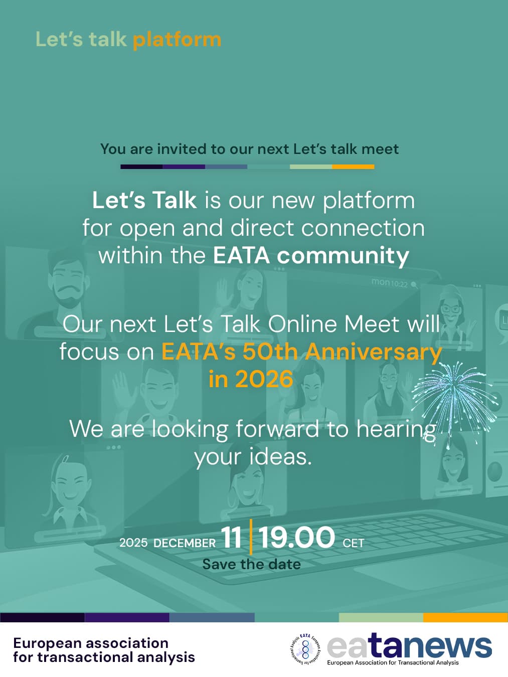 The first Let’s Talk meeting was designed especially for delegates, but this time, all members are warmly invited to join! Our next Let’s Talk Online Meet will focus on EATA’s 50th Anniversary in 2026 🎉 We’d love to hear your ideas on how we can celebrate this milestone in meaningful and cost-effective ways — honouring our history, key figures, and the evolution of EATA.
